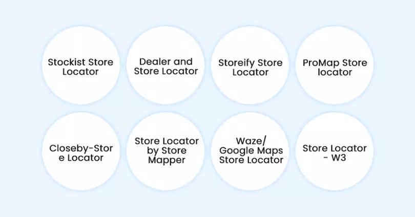 business. Some popular choices are Stockist Store Locator, Storeify Store Locator, ProMap Store locator, Closeby-Store Locator, etc.